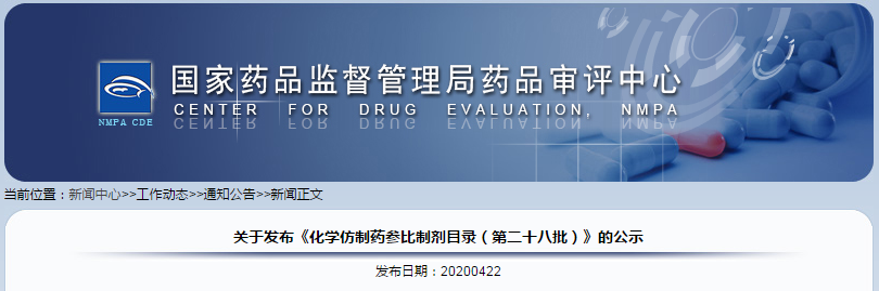 根據國家局2019年3月28日發布的《關于發布化學仿制藥參比制劑遴選與確定程序的公告》(2019年第25號),我中心組織遴選了第二十八批參比制劑(見附件),現予以公示征求意見。