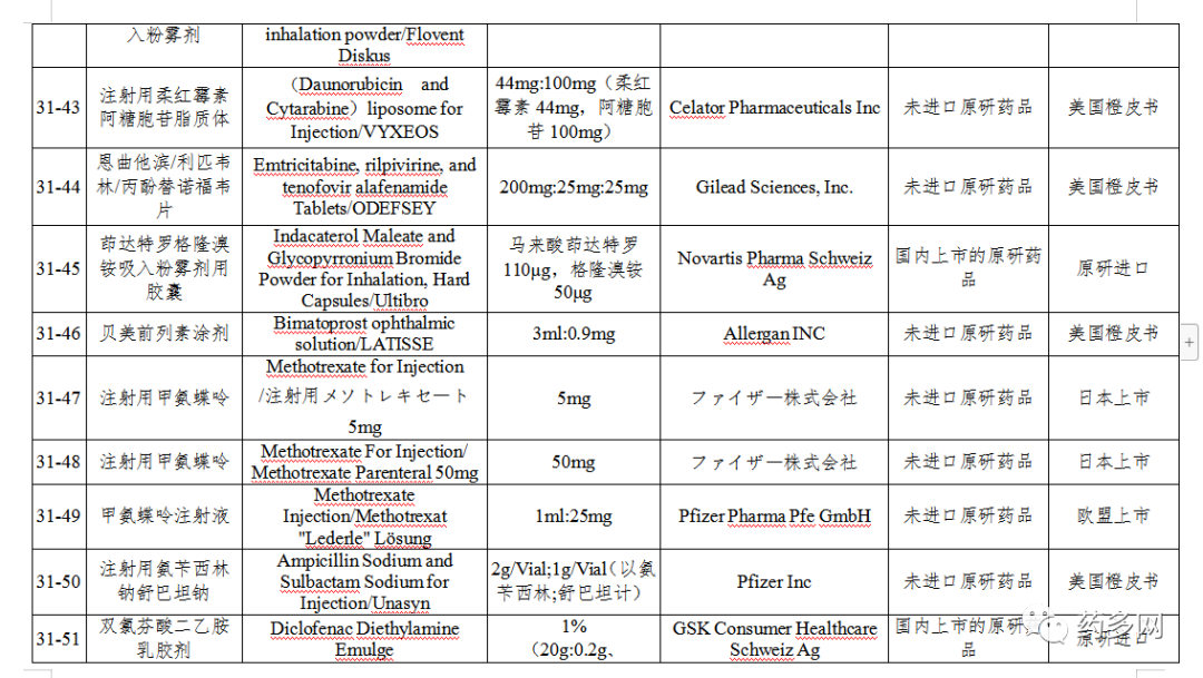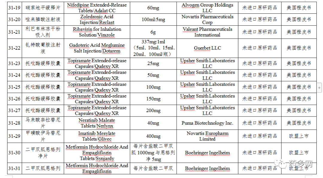 《化學仿制藥參比制劑目錄(第三十一批)》