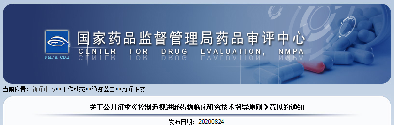 近視已成為全球最嚴重的公共健康問題之一。近年來,隨著社會生活和環境因素的顯著變化,我國的近視和高度近視患病率均不斷攀升,且呈現低齡化、重度化趨勢。為進一步規范和指導該領域新藥科學研發和評價,我中心起草了《控制近視進展藥物臨床研究技術指導原則》的征求意見稿,現向社會各界公開征求意見。
